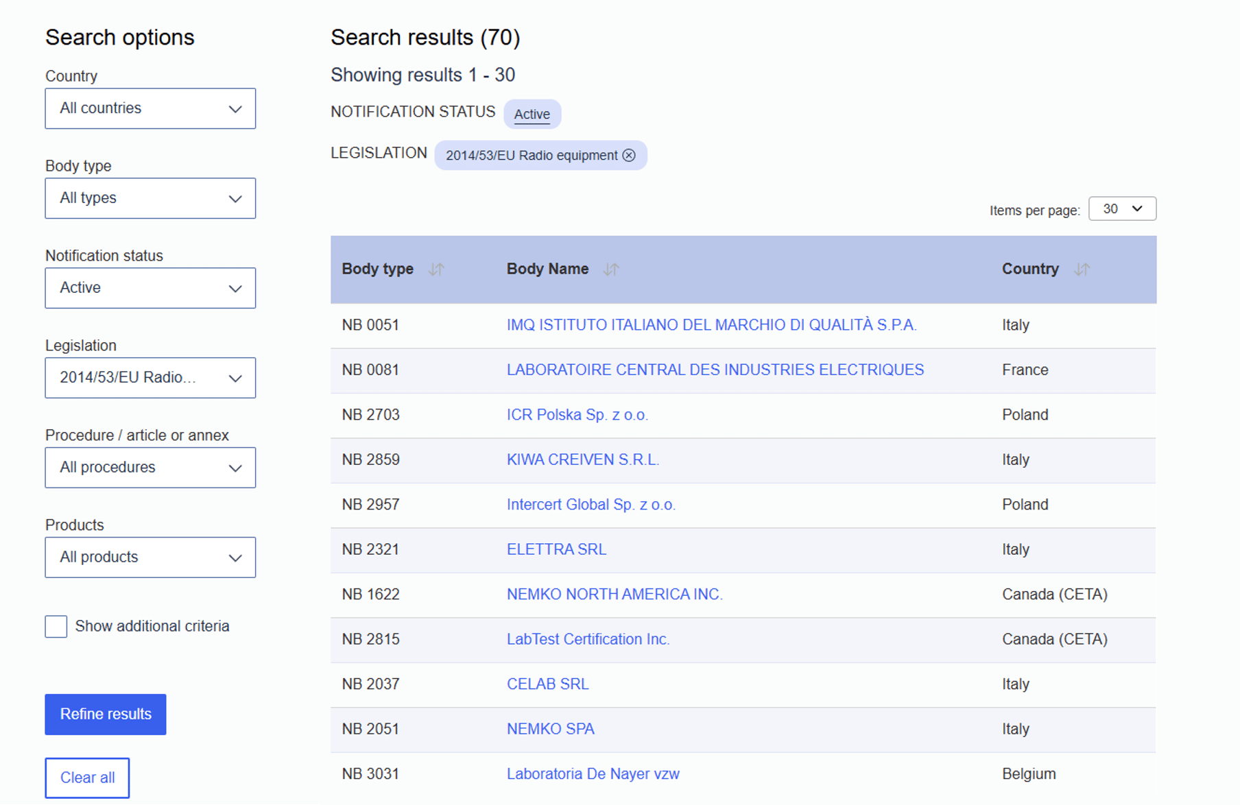 The list of Notified Bodies is available in the New Approach Notified and Designated Organisations (NANDO) database.