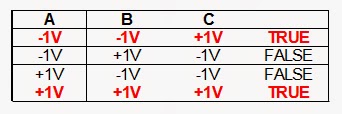 To make progress, we just need to do one more thing, and then we will be all set to use the EXNOR gate to determine level of similarity. For logic 1 we will allocate +1 volts (could be +5V or +3.3V or whatever), and for logic 0 we will allocate minus the logic 1, that is -1 volts (again, could be whatever).