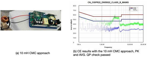 The final effective solution involved adding a 10 mH common-mode choke (CMC).